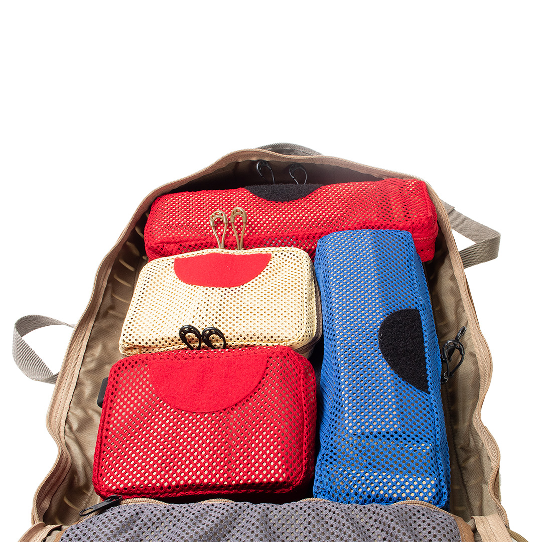 • Cores do protocolo MARCH3: segue a padronização internacional para atendimento médico de emergência, facilitando a separação de kits por prioridade e função.