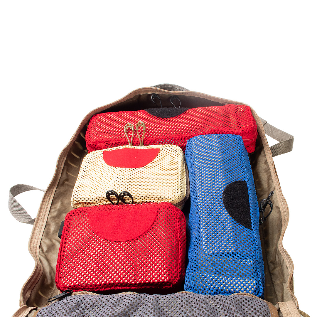 • Tela de poliéster resistente: permite visualizar facilmente o conteúdo interno, garantindo rapidez no acesso ao material certo em situações críticas.