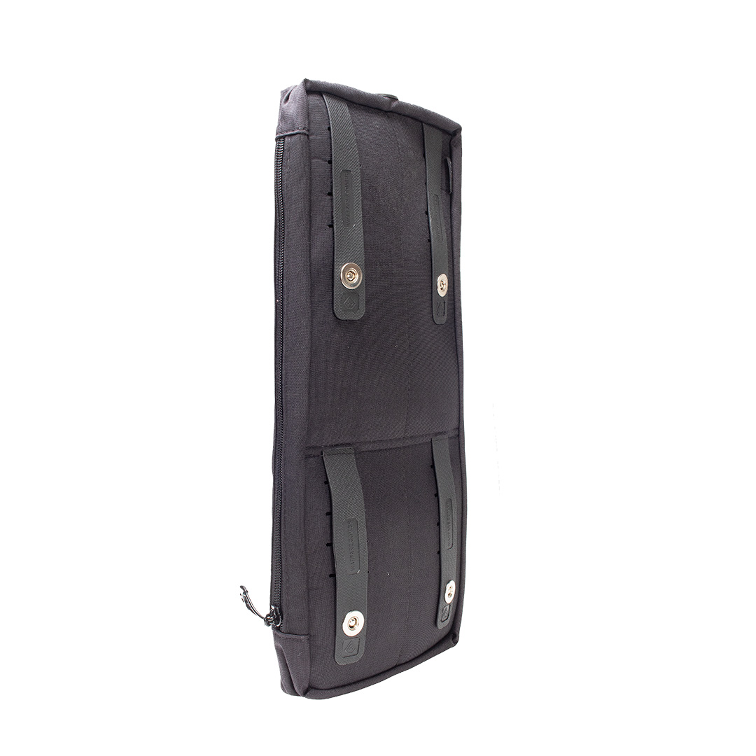 Frontal e traseira: Laminado de Cordura 500D com cortes a laser, garantindo um sistema MOLLE limpo e resistente a enroscos.