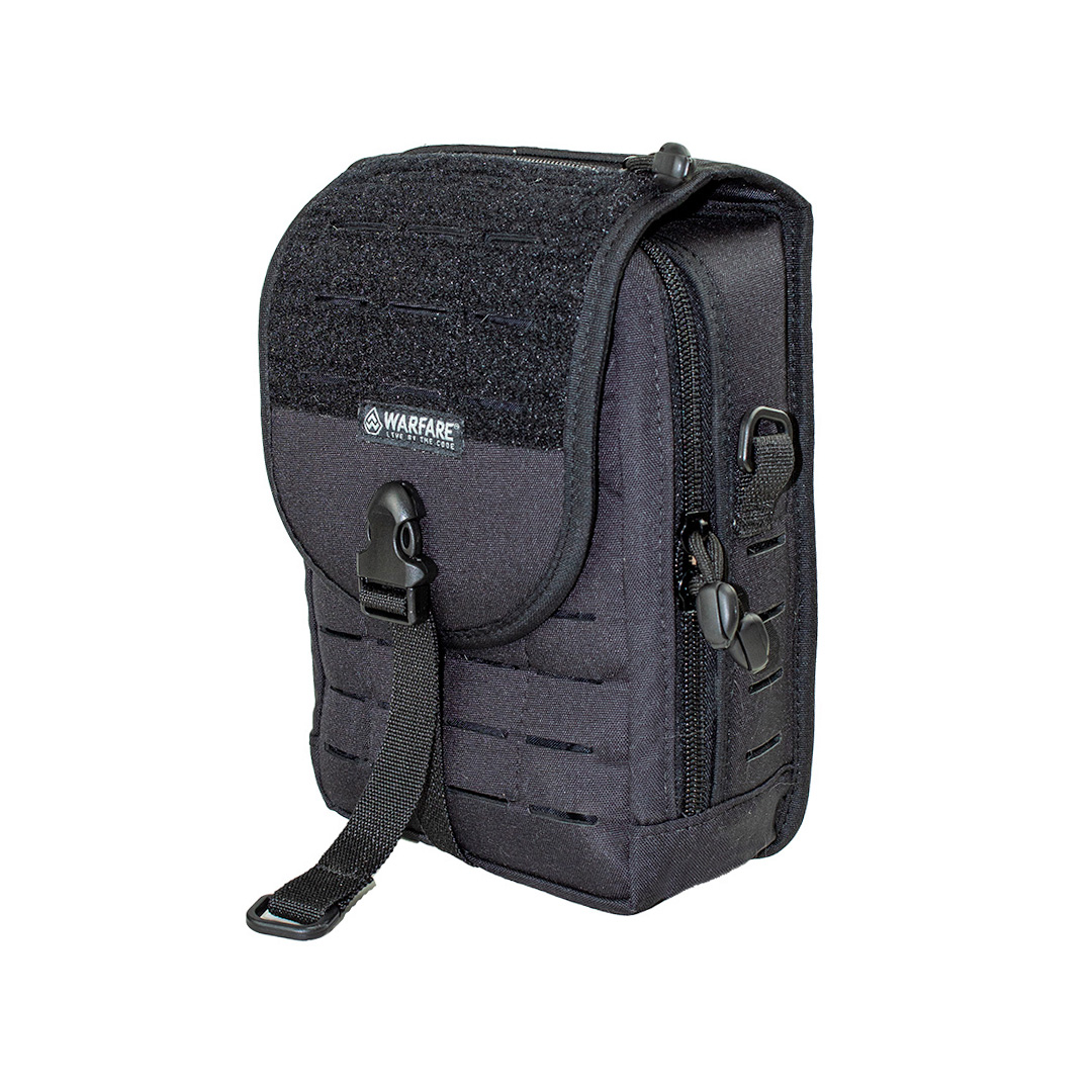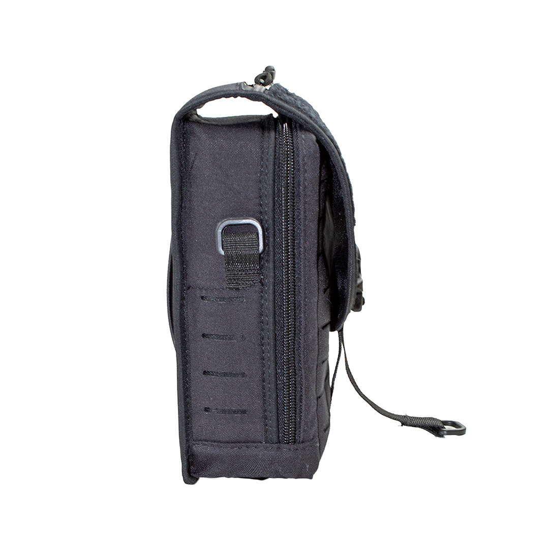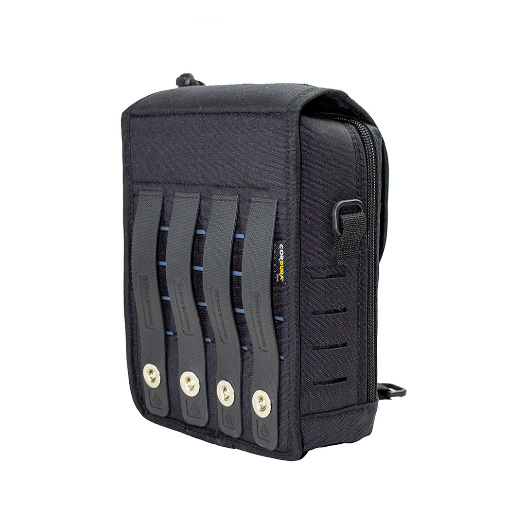 Pode ser utilizado como bolsa independente ou acoplado a coletes e mochilas táticas, oferecendo total flexibilidade operacional.