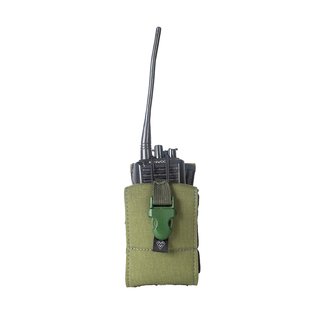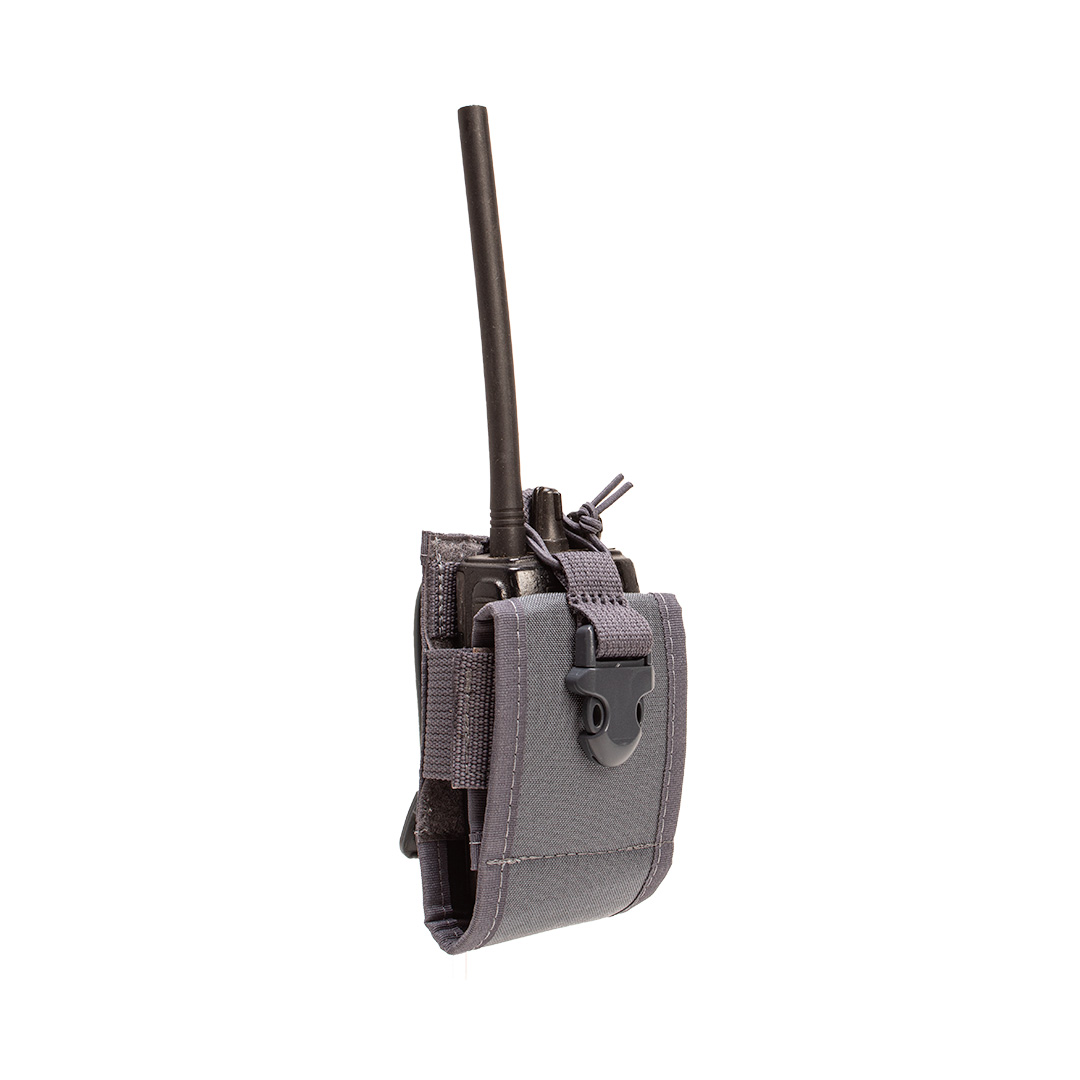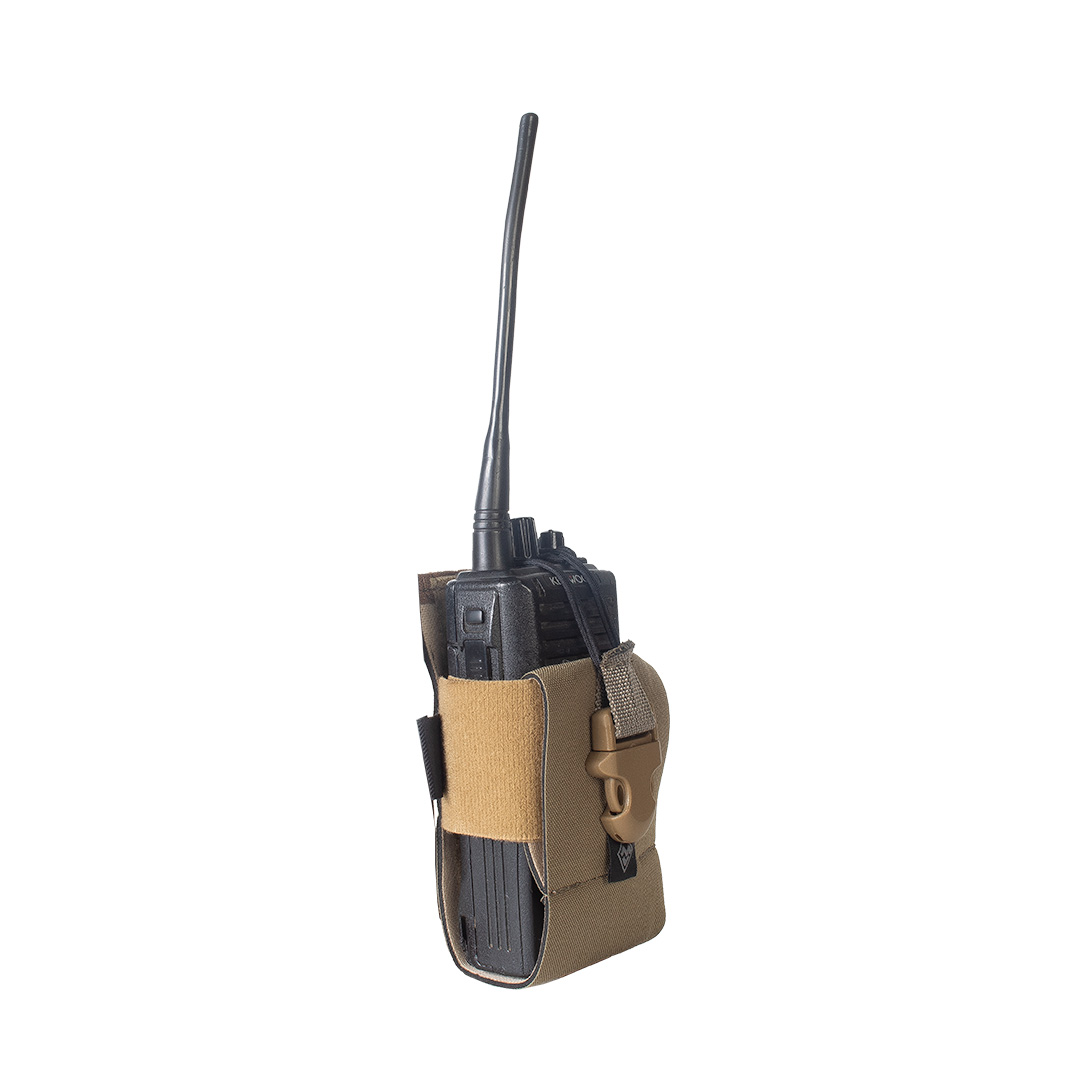 Porta Rádio Modular – ajuste de altura e largura, compatível com diversos modelos HT. Fixação MOLLE, resistência em Cordura 500D e acesso rápido.